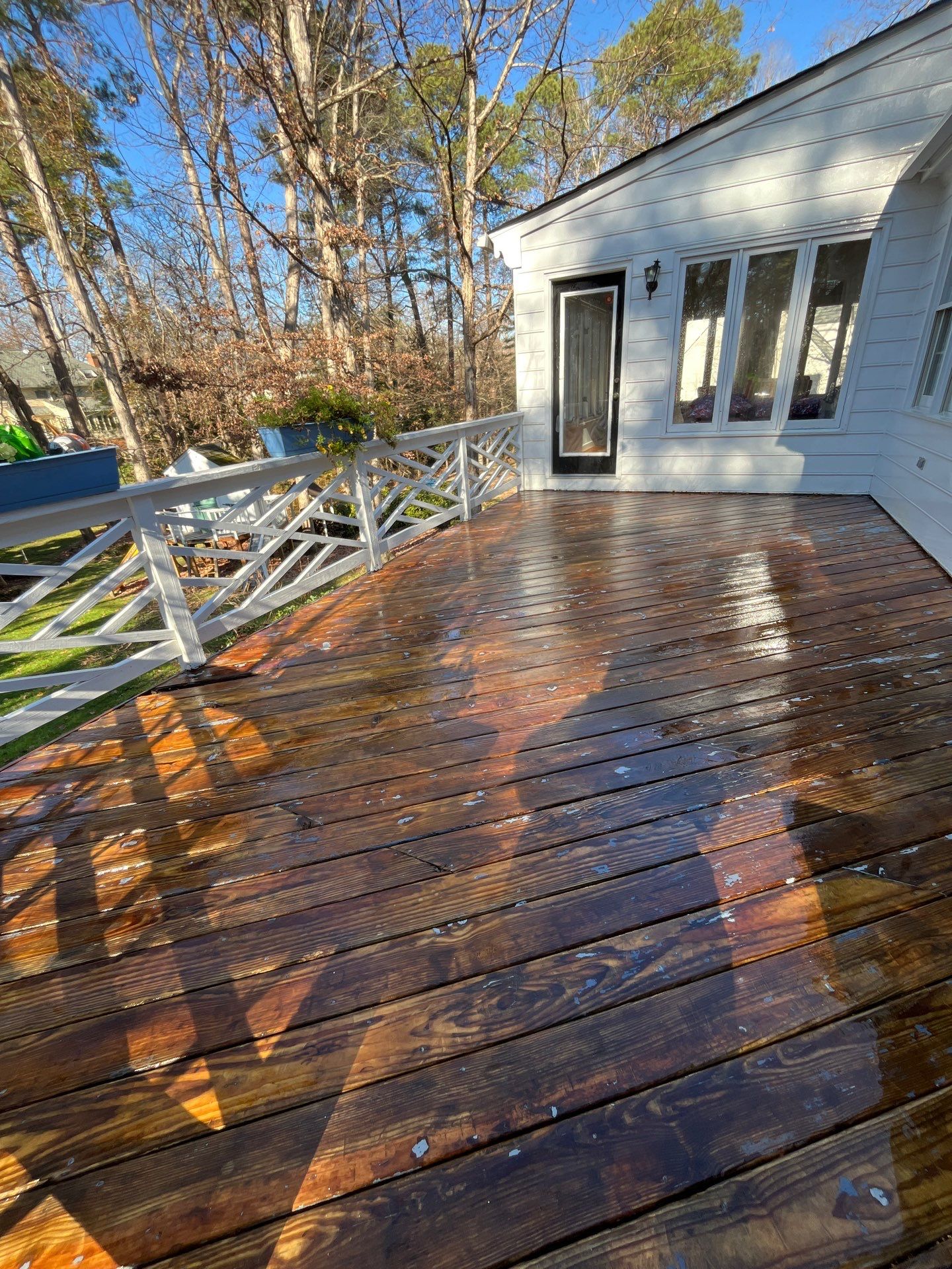 Advanced Power Cleaning recently completed an impressive House Washing and Heavy Deck Cleaning project in Richmond, VA, delivering a dramatic transformation that left the homeowner thrilled with the results. This Richmond client contacted us after noticing years of dirt, algae, and surface buildup that dulled the appearance of their siding and deck. Our team arrived promptly, bringing the professionalism and expertise that have made us the leading pressure washing company in Richmond. Using safe soft washing methods and specialized deck-cleaning solutions, we restored the home’s exterior and revitalized the wood surface, removing deep-set grime and organic growth. The homeowner was amazed at how clean, bright, and refreshed the entire property looked after our work. The project not only improved curb appeal but also helped protect the home from long-term exterior damage. Homeowners throughout Richmond, Mechanicsville, Ashland, Glen Allen, Short Pump, and Henrico trust Advanced Power Cleaning for high-quality exterior cleaning solutions that elevate the look and value of their properties.